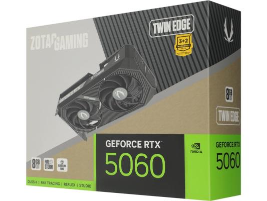 Видеокарта Zotac PCI-E 5.0 RTX 5060 TWIN EDGE NVIDIA GeForce RTX 5060 8Gb 128bit GDDR7 2497/28000 HDMIx1 DPx3 HDCP Ret