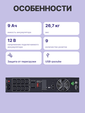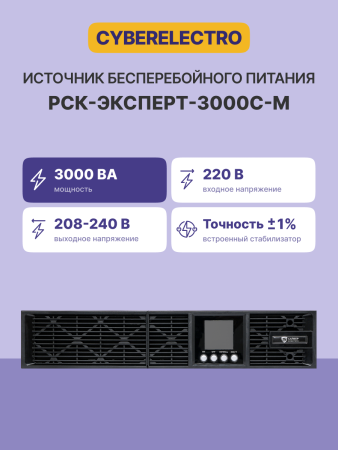 ИБП Сайбер Электро РСК-ЭКСПЕРТ-3000С-М Онлайн, Стойка/Напольный 3000ВА/2700Вт. USB/RS-232/SNMP Slot/EPO (8 IEC С13);(1) C19 (12В /9Ач. х 6) 2U (Изготовлено в РФ)