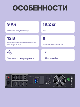 ИБП Сайбер Электро РСК-ЭКСПЕРТ-2000С-М Онлайн, Стойка/Напольный 2000ВА/1800Вт. USB/RS-232/SNMP Slot/EPO (8 IEC С13) (12В /9Ач. х 4) 2U (Изготовлено в РФ)