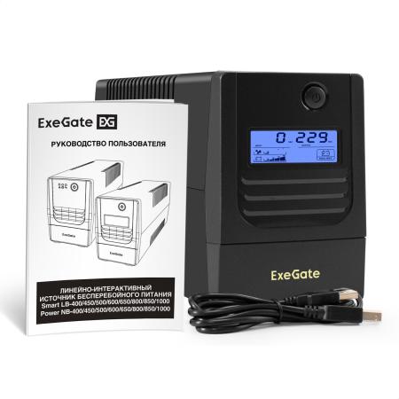 ИБП ExeGate Smart LB-500.LCD.AVR.2SH.USB (500VA/300W, LCD, AVR, 2*Schuko, USB, батарея 12V 4.5Ah, Black)