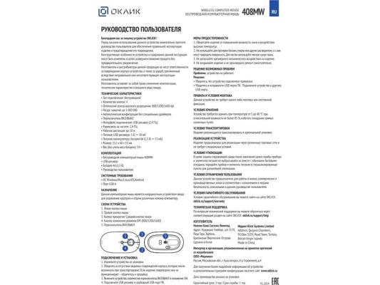 Мышь Оклик 408MW графитовый оптическая 1600dpi silent беспров. USB для ноутбука 4but (2007533)