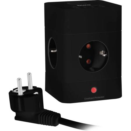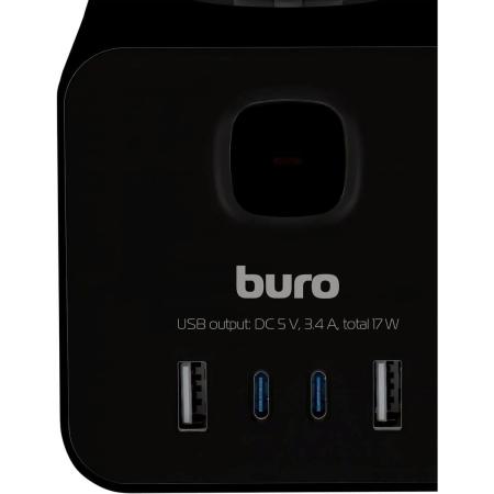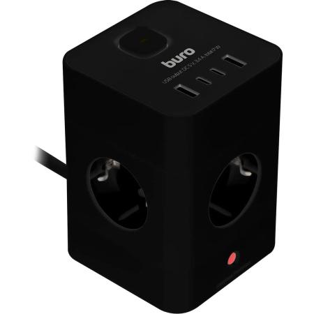 Сетевой удлинитель Buro BU-PTE4.1UC-B, 1.5м, черный