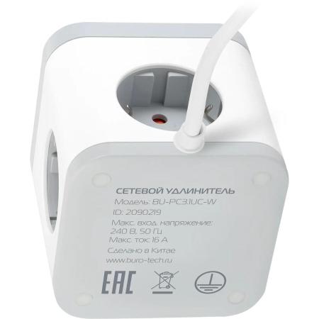 Сетевой удлинитель Buro BU-PC3.1UС-W, 1.5м, белый