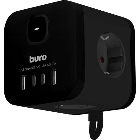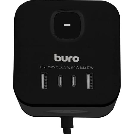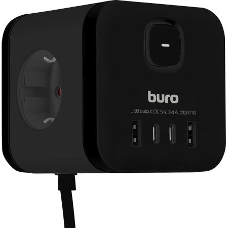 Сетевой удлинитель Buro BU-PC3.1UС-B, 1.5м, черный