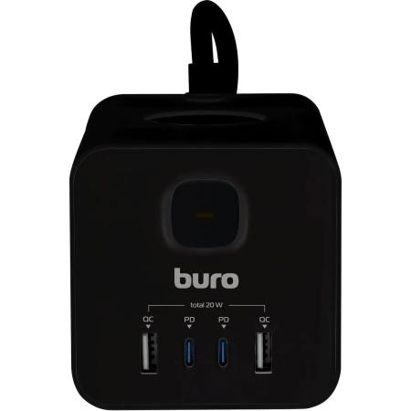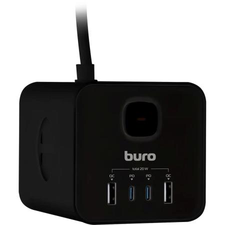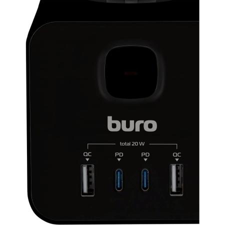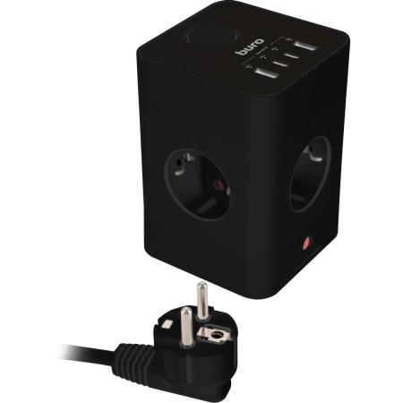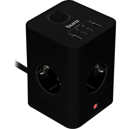 Сетевой удлинитель Buro BU-PTE4.1UC-Plus-B, 1.5м, черный