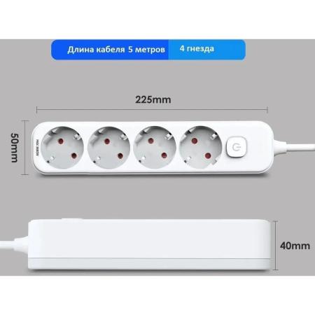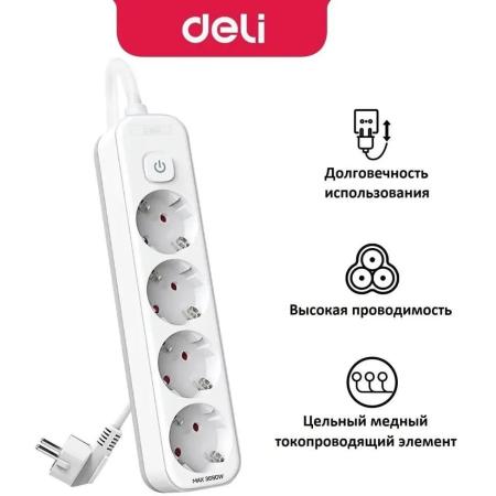 Сетевой фильтр Deli ET436, 5м, белый