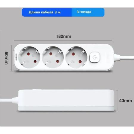 Сетевой фильтр Deli ET432, 3м, белый