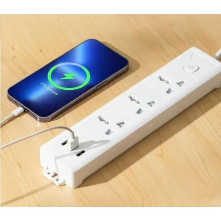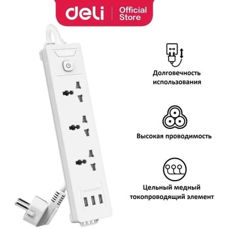 Сетевой фильтр Deli ET408, 2м, белый