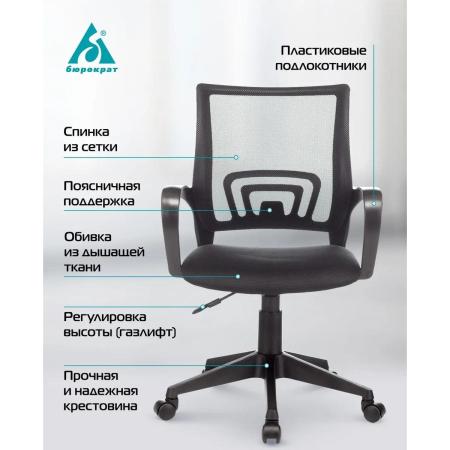 Кресло Бюрократ CH 696, на колесиках, сетка/ткань, черный [ch 696 black]