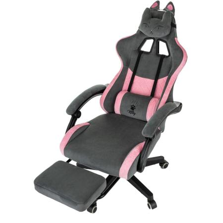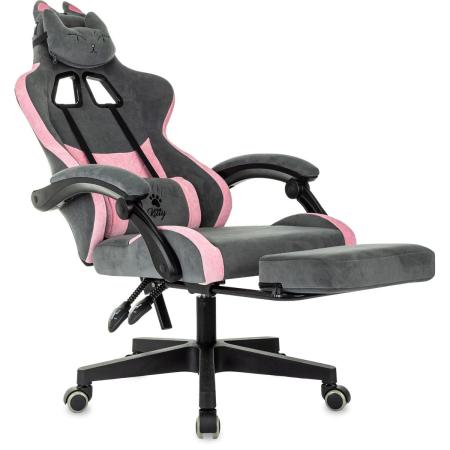 Кресло игровое KNIGHT Kitty/F, на колесиках, ткань, серый/розовый [knight kitty/f grey]