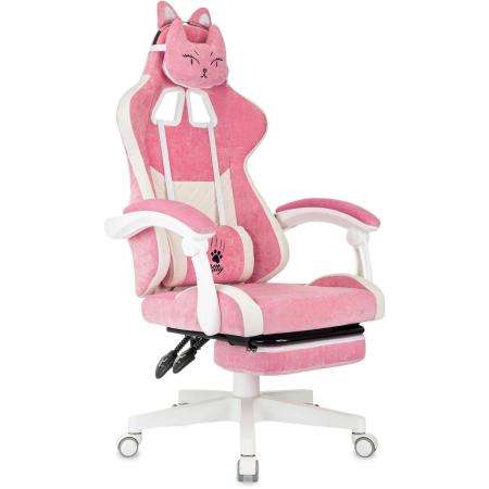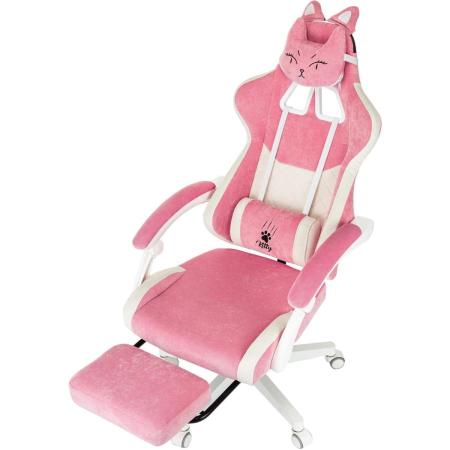 Кресло игровое KNIGHT Kitty/F W, на колесиках, ткань, розовый/белый [knight kitty/f w pnk]
