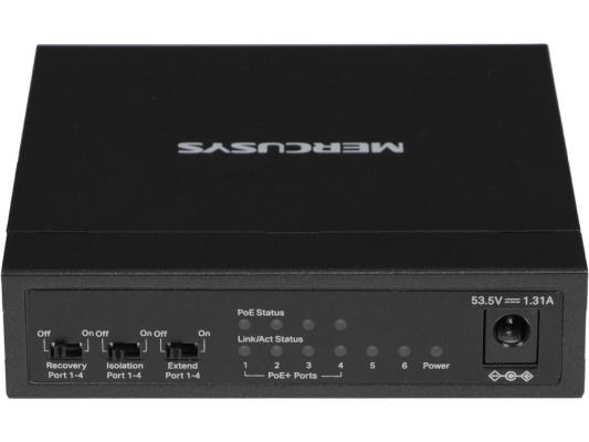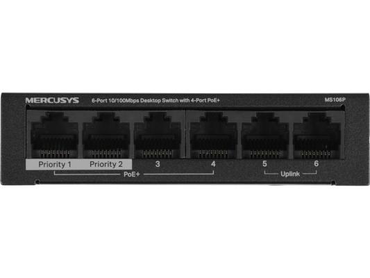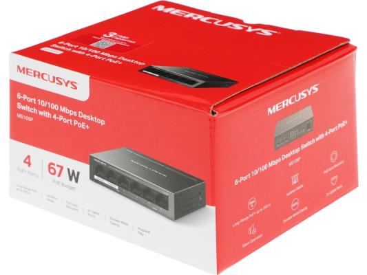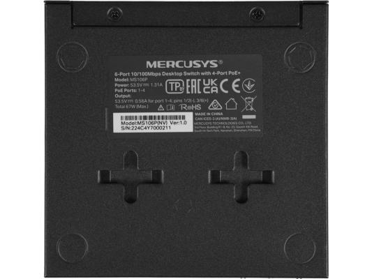 Коммутатор Mercusys MS106P (L2) 6x100Мбит/с 4PoE+ 67W неуправляемый