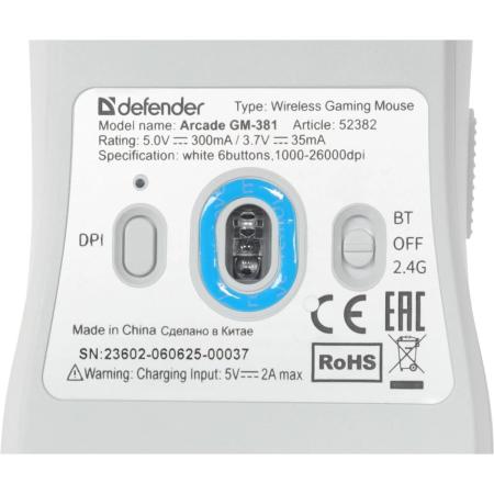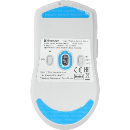Мышь беспроводная Defender Arcade, игровая, Bluetooth/Радио, оптическая, USB, USB-C, 26000dpi, белый [52382]