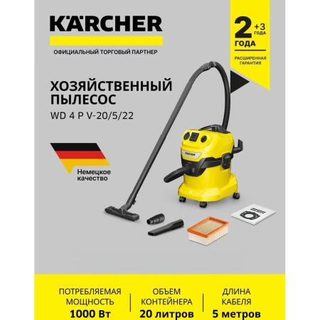 Строительный пылесос Karcher WD 4 P V-20/5/22, желтый [1.628-270.0]