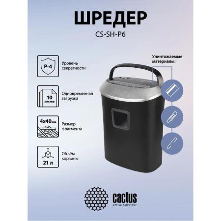 Уничтожитель бумаг Cactus CS-SH-P6, P-4, 4х40 мм, 10 лист. одновременно, 21л