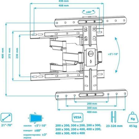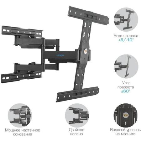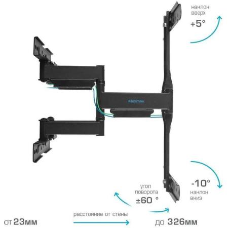 Кронштейн для телевизора Kromax Ultra Slim-101, 21-70", настенный, поворот и наклон, черный [90652]