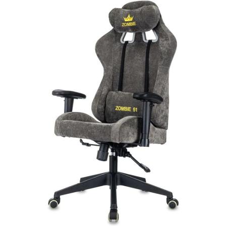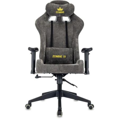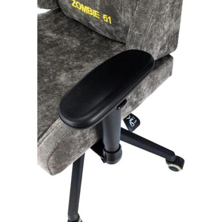 Кресло игровое ZOMBIE 51, ткань, до 150кг, топ-ган люкс, регулируемые 2D подлокотники, серый