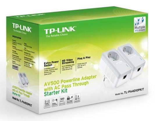 Адаптер TP-Link TL-PA4010PKIT Базовый комплект адаптеров Powerline стандарта AV500/AV600 со встроенной розеткой