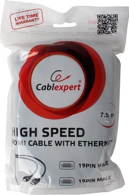 Кабель HDMI Gembird/Cablexpert, 7.5м, v2.0, 19M/19M, черный, позол.разъемы, экран, пакет CC-HDMI4-7.5M