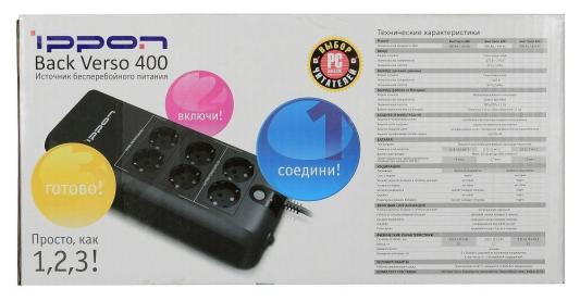 Ippon Back Verso 400 - это надежный источник бесперебойного питания, суммарная мощность нагрузки которого составляет 400 ВА. Данная модель станет надежной защитой вашего электронного обородувания от различных неблагоприятных факторов, связанных с нестабильностью электросети, как то: резкое повышение или понижение напряжения, внезапное отключение сети и т.п. ИБП Ippon Back Verso 400 оснащен рядом особенностей, которые обеспечат максимальную безопасность компьютерных и периферийных устройств - модель имеет встроенную защиту от короткого замыкания, перегрузки и скачков напряжения, а также обладает специальной защитой компьютерных сетей и телефонной линии.
