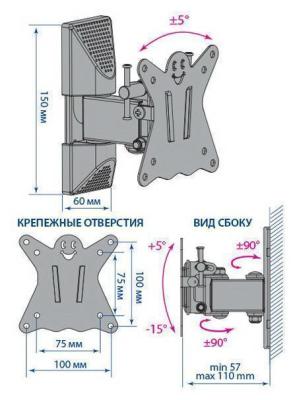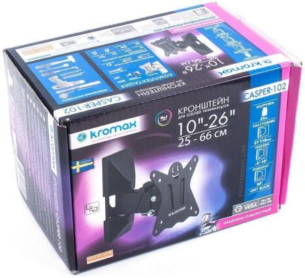 Кронштейн Kromax CASPER-102 Black Наклонно-поворотный для LED TV 10"-26", max 25 кг, настенный, 3 ст свободы, от стены 57-110 мм, max VESA 100x100 мм