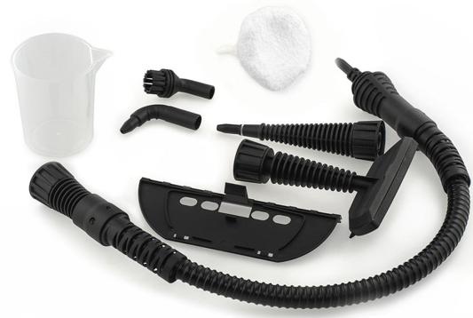 Комплект *Щетка для отпаривания, скребок для стекла, паровой шланг, струйная насадка, тряпка для отпаривания, круглая нейлоновая щетка, угловая насадка, воронка, мерная чашка, руководство пользователя, коллекционный магнит, гарантийный талон