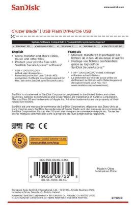 Внешний накопитель 64GB USB Drive <USB 2.0 SanDisk Cruzer Blade (SDCZ50-064G-B35)