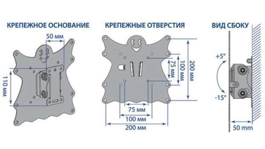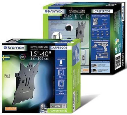 Кронштейн Kromax CASPER-201 black, для LED/LCD TV 15"-40", max 30 кг, 1 ст свободы, наклон +5°-15°, от стены 50 мм, VESA 200x200 мм