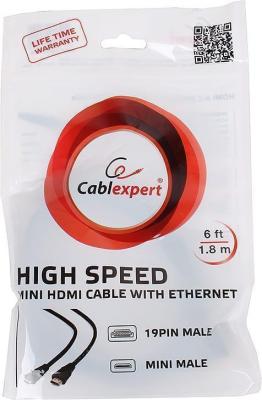 Кабель Gembird/Cablexpert HDMI-miniHDMI v1.4, 19M/19M, 1.8м, 3D, Ethernet, черный, позол.
