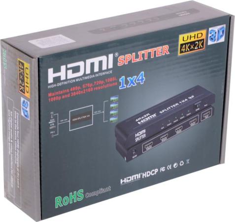 Разветвитель HDMI 4K Splitter Orient HSP0104H , 1->4, HDMI 1.4b/3D, UHDTV 4K(3840x2160)/HDTV1080p/1080i/720p, HDCP1.2, внешний БП 5В/1.5A, метал.корпу