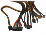 Разъемы питания материнской платы и процессораПеречисление разъемов, входящих в комплект БП. К ним относятся: разъемы для питания видеокарт (6-pin и 8-pin, которые позволяют справляться с необходимой для карты нагрузкой); разъемы для питания процессора (в 2000 году процессоры стали мощнее, и как следствие увеличилась потребность во входящих токах. Для этого ввели кабель 4-pin, который справлялся с такой нагрузкой. Чуть позже появились 8-pin разъемы, делавшие работу процессора более стабильной, но подходящие и к стандарту 4-pin); 4-pin Molex (указывается их количество. Разъем питает жесткие диски, вентиляторы и платы расширения); 4-pin Floppy (указывается их количество. Разъем питает звуковые карты и устройства для дискет); питание материнской платы (стандарт 20+4 pin, четыре контакта являются съемными).
