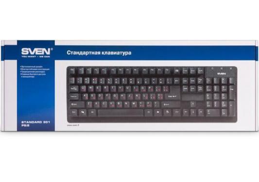 Клавиатура SVEN Standard 301 USB чёрная, 105 клавиш, красная кириллица, классич. раскладка, коробка цвет