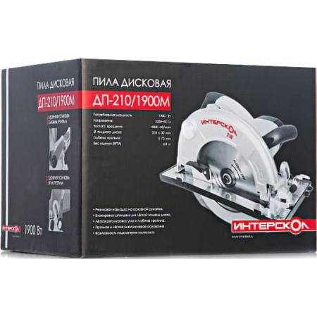 Модель Интерскол ДП-210/1900М - это циркулярная пила, использующаяся в быту и строительстве для поперечного и продольного пиления различных изделий, будь то фанера, доски, ламинат, паркета и так далее.