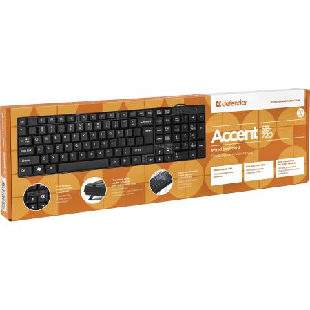 Проводная клавиатура DEFENDER Accent SB-720 RU,черный,компактная