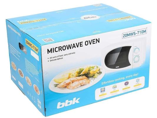 Микроволновая печь BBK 20MWS-710M/W белый (соло), (20 литров, соло, механическое управление, 700 Вт) является продуктом торговой марки ВВК. Компания в последнее десятилетие успешно занимает лидерское положение по продажам электронных товаров в своем сегменте. Благодаря использованию качественных компонентов микроволновая печь прослужит долгое время, что гарантировано производителем. Внутренняя поверхность прибора изготовлена из эмали, что гарантирует прочность и безопасность при приготовлении пищи. Общая мощность составляет 700 Вт.