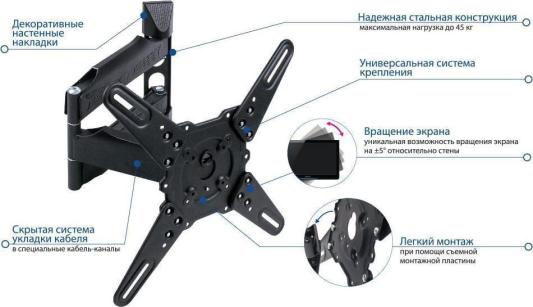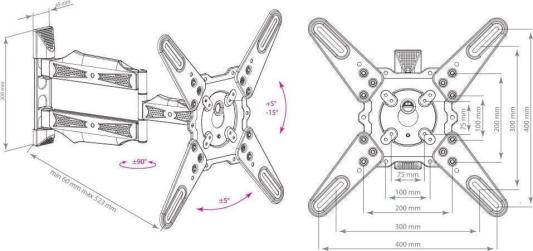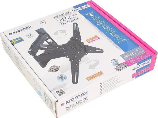 Кронштейн Kromax ATLANTIS-40 Grey Наклонно-поворотный для LED TV 22"-65", max 40 кг, настенный, 4 ст свободы, от стены 60-523 мм, max VESA 400x400 мм