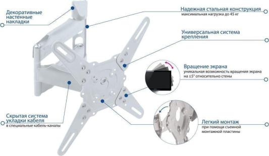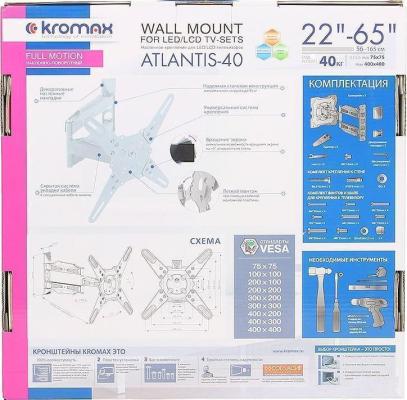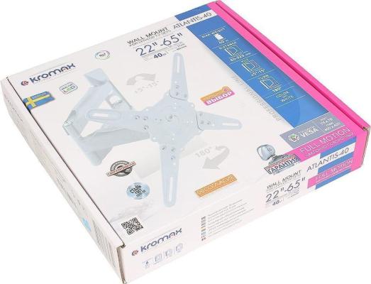 Кронштейн Kromax ATLANTIS-40 white (Наклонно-поворотный для LED TV 22"-65", 4 ст. свободы, VESA 75/100/200X100/200X200/300x300/400x200/400x400)40кг