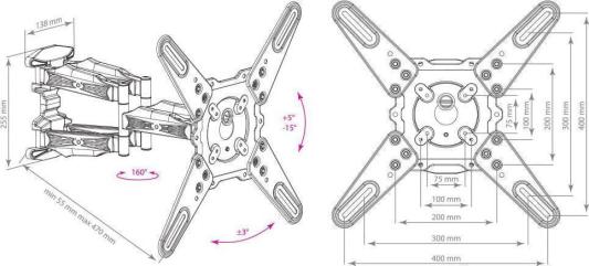 Кронштейн Kromax ATLANTIS-45 White (Наклонно-поворотный для LED TV 22"-65", 4 ст. свободы, VESA 75/100/200X100/200X200/300x300/400x200/400x400)45кг