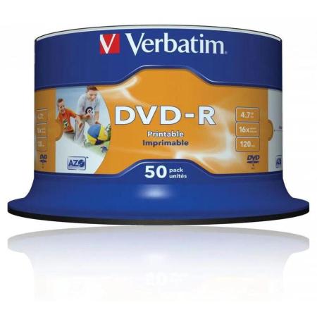 Диски DVD-R 4,7GB Verbatim 16x CB/50 Full Ink Print ID (43649)