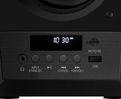 Техническое оснащение и функционал SVEN MC-20 впечатляют – высококачественные купольные ВЧ-динамики, деревянный корпус - необходимые атрибуты хорошей акустики. Кроме того, система оснащена удобным пультом управления, встроенным радио, информативным дисплеем, слотом для SD-карт и разъемом для USB flash. Модель может стать отличным помощником в озвучивании фильмов – благодаря оптическому входу ее можно подключать практически ко всем моделям современных телевизоров и получать чистый звук без помех. А еще SVEN MC-20 имеет функцию беспроводной передачи звука по Bluetooth – в этом случае вы сможете проигрывать музыку со своего смартфона или планшета, при этом акустика будет поддерживать устойчивую связь с мобильным устройством на расстоянии до 10 м.