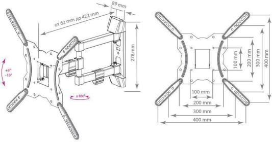Кронштейн Kromax GALACTIC-40 Black, Кр.стал настенный для TV 22"-65", max 35 кг, 5 ст св., нак. -3+10°, пов. 180°, от ст. 62-422 мм, max VESA 400x400