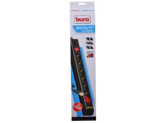 Сетевой фильтр BURO BU-SP5_USB_2A-B 6 розеток 5 м черный