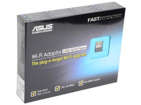 USB-AC53 – это первый USB-адаптер ASUS, соответствующий новому беспроводному стандарту Wi-Fi 802.11ac. Обеспечиваемая им скорость передачи данных составляет 867 и 300 Мбит/с в диапазонах 5 и 2,4 ГГц, соответственно. Четыре встроенные антенны типа PIFA обеспечивают стабильную работу, а включенные в комплект клипса NetClip и подставка позволяют расположить адаптер наиболее оптимальным образом с точки зрения уверенной передачи беспроводного сигнала.