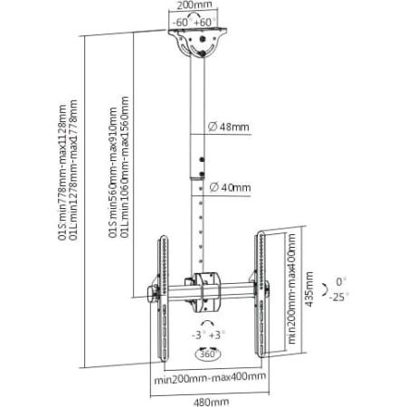 Кронштейн ARM Media LCD-1700w белый, профессиональный потолочный для LED/LCD/ TV 26"-65", max 55 кг, 3 ст свободы, max VESA 400x400 мм