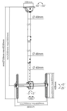Кронштейн ARM Media LCD-3000 черный, потолочный кронштейн для двух LED/LCD/PLASMA телевизоров 26"-65 max 2х45 кг, потолочный, 3 ст свободы