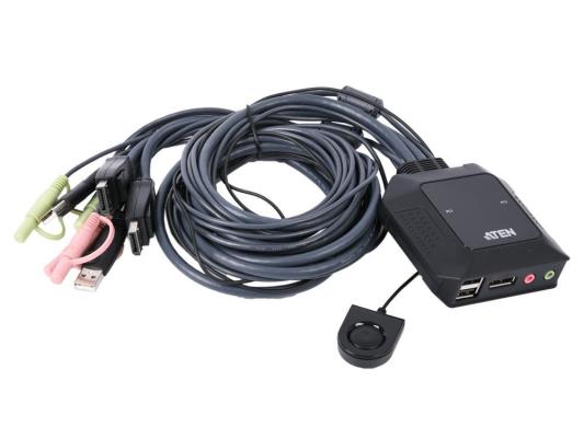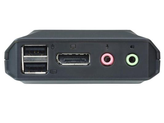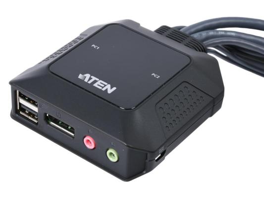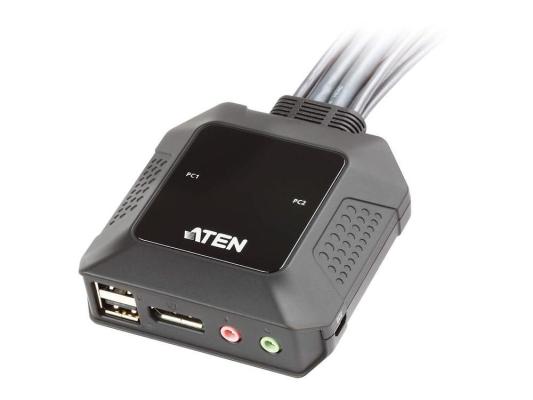 Переключатель KVM ATEN (CS22DP-AT|) KVM, 1 user USB+DisplayPort+AUDIO => 2 cpu USB+DisplayPort+AUDIO, со встр.шнурами USB 2x1.2м., 2560x1600, настол