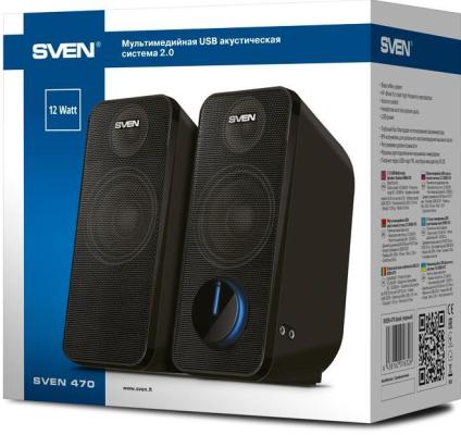 Колонки Sven 470,чёрный,USB,2.0, мощность 2x6 Вт(RMS) 12 Вт, 80-20000 Гц, mini Jack, USB