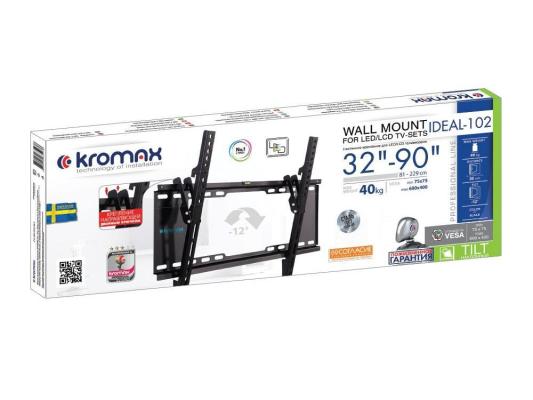 Кронштейн Kromax IDEAL-102 black, для LED/LCD TV 32"-90", max 20 кг, настенный, 1 ст свободы, наклон -12°,от стены 30 мм, max VESA 600x400 мм.