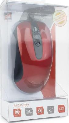 Мышь проводная Gembird MOP-400-R, красный, бесшумный клик, 2 кнопки+колесо кнопка, 1000 DPI, soft-touch, кабель 1.45м, блистер