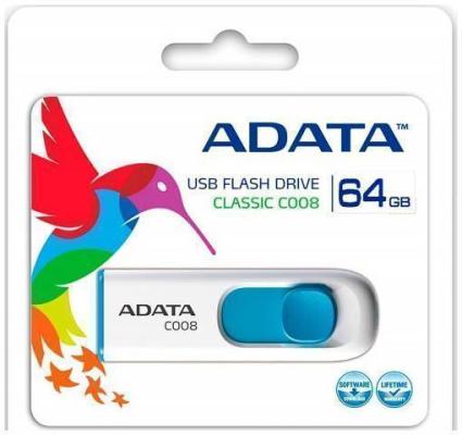 Внешний накопитель 64GB USB Drive ADATA USB 2.0 C008 бело-синяя выдвижная AC008-64G-RWE